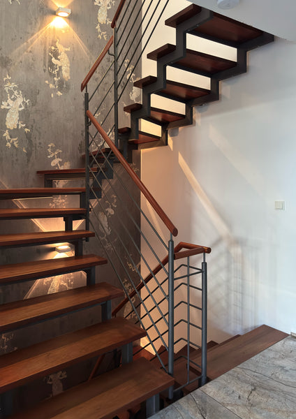 A custom version of our ‘Fabry Perot’ created exclusively for this stretching over 3 floors open staircase.