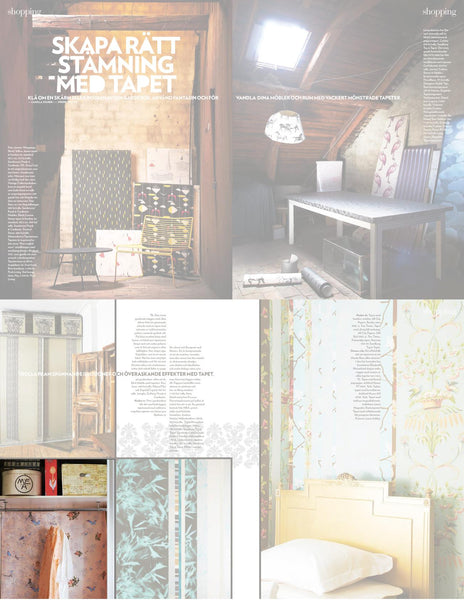 We love this styling of our wallpaper in this Scandi Press feature!They used our Skeletons in the Closet design (left) matched/connected with Bouquets and Butterflies (right).